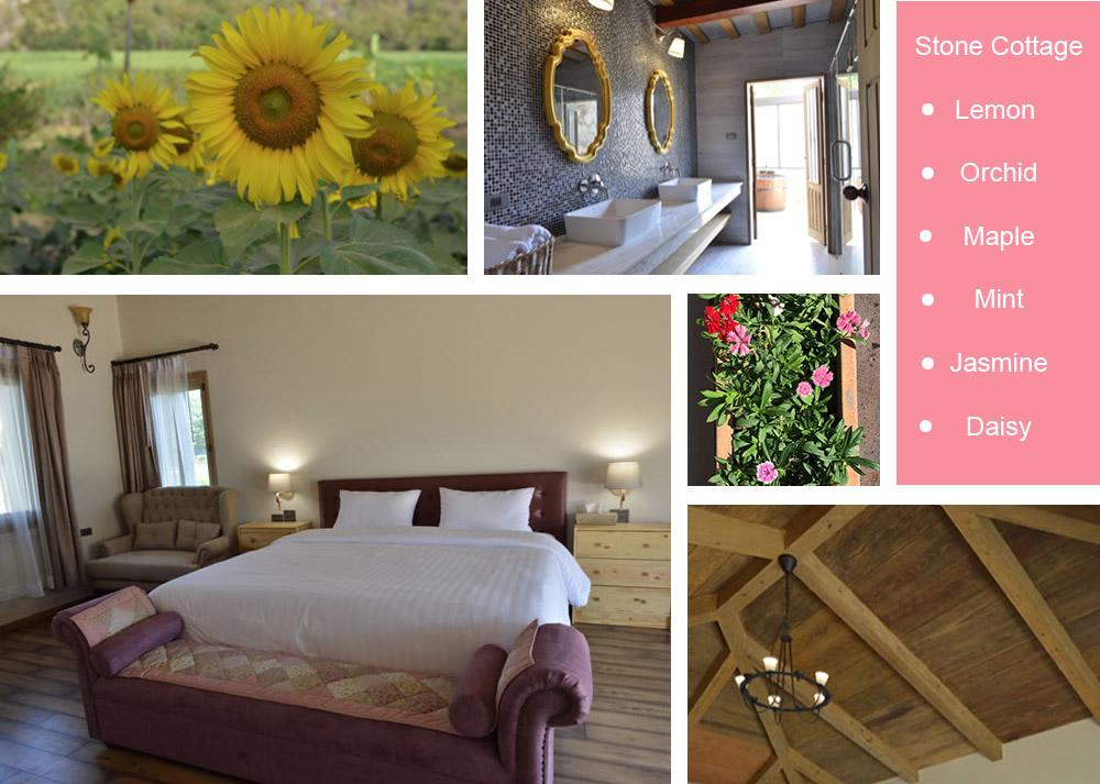 More quiet and reserved than you are.The cottages combine stone walls and yellow pine timber with a definite Italy stone cottage character .Each cottage has a outdoor shower and a private terrace with a palm garden view ;a small flower field and surrounding landscape is tangibly close.The Stone Cottage is an especially good value for groups or a family can rent the cottage, which sleeps up to four persons.